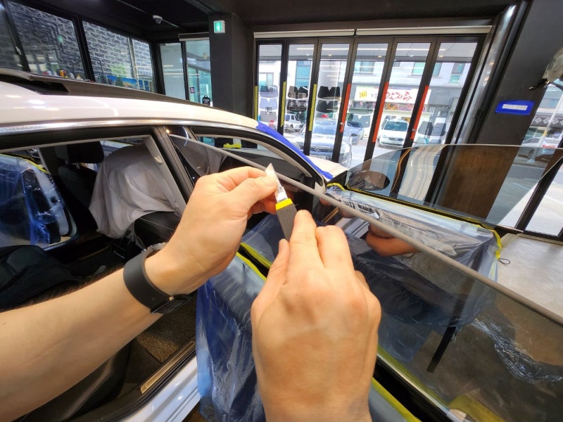 (안중청북틴팅, 합리적인 가격의 반사필름은?) 애니가드 AP-80은 높은 열차단율과 합리적인 가격으로 가성비 좋은 필름입니다. 승용차 전면+측면, 후면 기준 소비자가격은 68만원이며, 할인받으시면 큰 부담없이 장착받으실 수 있으니 문의주시기 바랍니다. 기존 필름은 일정 수준의 열차단 필름이었는데, 오래 설치하다 보니 변색이 되었고 필름으로서의 기능을 잃었습니다. 필름을 제거하고 애니가드 AP-80으로 장착해드리겠습니다. 신형 SM3 차량의 경우 사이드 프레임 몰딩 부분이 스웨이드 소재로 되어 있습니다. 장착 시 먼지 유입을 최소화하기 위해 스웨이드에 마스킹 테이프를 감싼 후 작업합니다. 마스킹을 하지 않을 경우 각 창문마다 수십 개의 먼지 입자가 들어와 매우 보기 흉해질 수 있습니다. 작업 준비 완료입니다. 실내자재 침수방지 및 물때 방지를 위해 필요한 모든 부위를 마스킹하고 커버링한 후 작업을 시작합니다. 사이드 유리 열성형을 준비하세요. 열성형 없이 부착하면 실제로 부착할 때 필름이 물기둥처럼 솟아올라 시공에 방해가 되고 먼지가 많이 발생합니다. 열성형 없이도 가능하지만 깔끔한 결과를 위해서는 필름을 먼저 수축시킨 후 부착하는 것이 좋습니다. 이렇게 고온을 이용해 수축시키면 깔끔한 작업 결과가 나옵니다. 필름을 제거했는데 앞 유리에 염색약이 많이 남아 있습니다. 세척이 매우 어려울 것으로 예상됩니다.. ㅜㅜ 열선으로 리어 필름을 제거하고 있습니다. 특히 Sm 차량의 열선은 약해서 특히 조심해야 합니다. 가장 안전한 방법으로 제거하고 있지만 100% 안전한 것은 아닙니다. 사이드 유리 세척을 진행하고 있으며 필름을 부착한 후에는 깨끗이 깎아내는 것이 기본입니다. 휘어진 리어나 프론트 유리는 외부에서 유리의 곡선에 맞게 열성형한 후 내부에서 부착합니다. 필름에 먼지와 이물질이 많이 붙어 있습니다. 필름 부착 시 먼지가 들어갈 수 있으니 안쪽에서 부착하기 전에 반드시 필름을 세척해 주세요. 모든 작업이 완료되었습니다. 전면 AnyGuard AP-80은 30%입니다. 반사 필름이라 프라이버시 보호 효과는 확실합니다. 필름과 솔라글라스가 녹색빛으로 합쳐져 색상도 보기 좋습니다. 안쪽에서 봐도 맑고 깨끗해서 시력이 보통이라면 야간 운전에도 큰 문제가 없을 겁니다. 시력에 문제가 있는 저라도 불편함 없이 운전할 수 있습니다. 측면 AP-80은 10%입니다. 현대나 기아의 중형 이하 차량은 사이드 윈도우에 솔라글라스가 적용되지 않아 은색 반사로 나오지만 르노삼성 차량은 솔라글라스가 적용돼서 전체 윈도우가 같은 색상으로 나옵니다. 그래서 더 보기 좋죠^^ 전면에서 보시다시피 사이드 윈도우는 컬러 유리처럼 느껴지는 깔끔하고 무단, 정밀한 커팅으로 설치되었습니다. 마지막으로 후면 AP-80은 10%입니다. 기존 필름을 전열선 손상 없이 안전하게 제거하였고, 깔끔하게 작업이 진행되었습니다. 시공문의 및 길찾기는 네이버 톡톡을 이용해주세요! 50m 네이버 주식회사 더보기 / 오픈스트리트맵 지도데이터 x 네이버 주식회사 / 오픈스트리트맵 지도제어자 범례 부동산 거리 읍, 면, 시, 군, 구시가지, 도 국가 틴팅맨 유리틴트 스미스클럽 애니가드 경기도 평택시 안중읍 송담8길 46 1층 틴팅맨