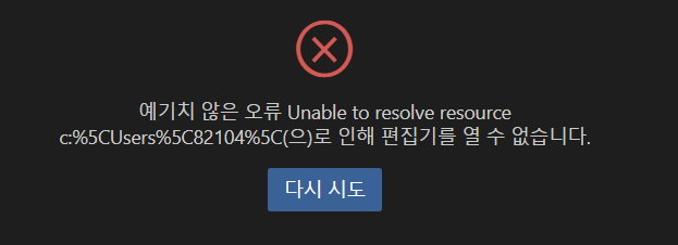 하이퍼링크로 이동하면 이 오류가 발생합니다. (비주얼 스튜디오 코드)
