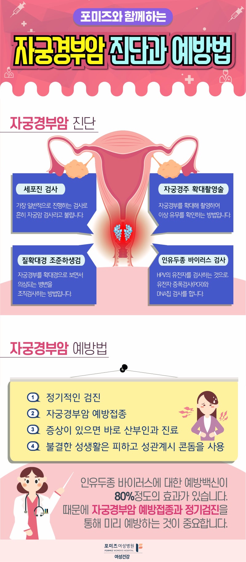 대부분의 HPV 사례는 감염 사실이 알려진 후 3-6개월 후에 치료를 받을 필요 없이 재검사를 하면 더 이상 발견되지 않을 정도로 감소합니다. 동일한 바이러스가 6개월 이상 검출된 경우에는 자궁면역력을 향상시키기 위한 노력이 필요합니다. 생활 습관 변화나 HPV 치료를 통해 자궁경부 면역력을 향상시키면 바이러스를 감지할 수 없는 수준으로 줄일 수 있습니다. HPV 감염만으로는 치료의 대상이 될 수 없는 경우, 재발성 질염과 같은 지속적인 감염이나 관련 증상이 지속되면 치료를 계획할 수 있습니다.