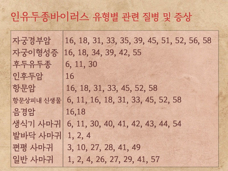 인유두종바이러스를 아형을 포함하여 종류별로 분류하면 200종 이상의 바이러스로 구성된 집단이다. 발견된 순서대로 번호가 매겨져 있지만 가장 친숙한 번호는 HPV 16과 18입니다. 16번과 18번 바이러스가 가장 위험해 감염 사실을 아는 즉시 치료를 받아야 한다는 사람도 있고, 바이러스 종류가 별로 중요하지 않다는 사람도 있다. 저는 주로 자궁경부 이형성증이나 HPV 관련 질병을 치료하기 때문에 환자들로부터 HPV에 대한 질문을 많이 받습니다. 오늘은 인유두종 바이러스의 종류에 대해 자세히 알아보겠습니다.